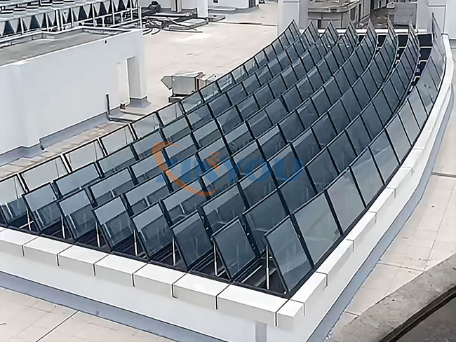 □天窗啟閉易群組控制,每組天窗數(shù)根據(jù)天窗數(shù)量及控制距離決定。其***開(kāi)啟角度為70°。