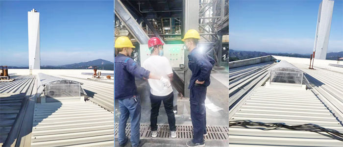 8月19日把產(chǎn)品發(fā)貨贛州,安裝人員 隨后趕至現(xiàn)場開安全教育會議,查看現(xiàn)場時發(fā)現(xiàn)廠房內(nèi)設備進不去,鑫友們商議好布線方案經(jīng)電廠副總同意后開始施工布線。高度太高,從九層穿線至三層,安裝人員克服困難,倍道而進,爭取早日交付。