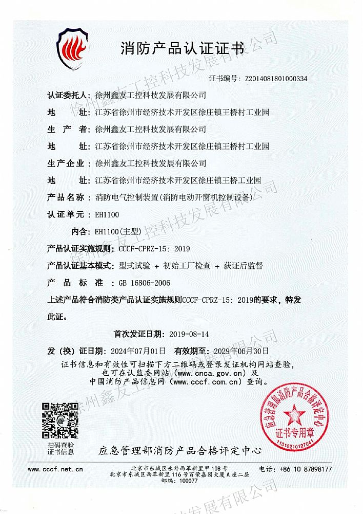 消防產品認證證書EH1100