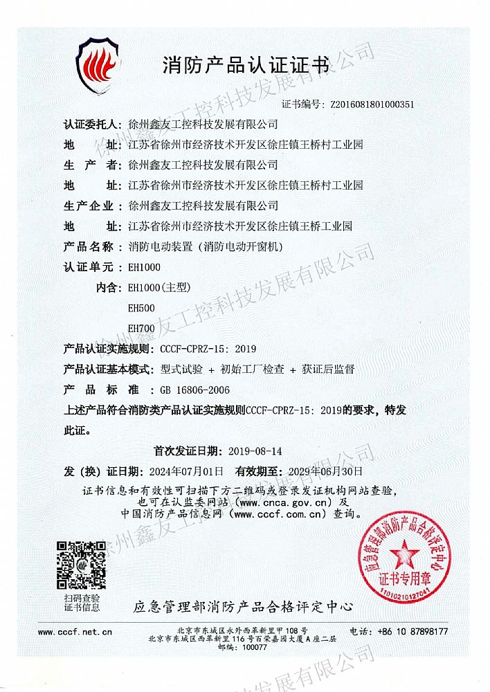 消防產品認證證書EH1000...