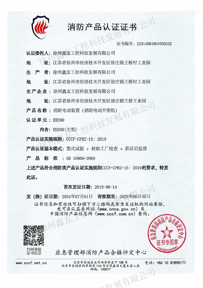 消防產品認證證書EH300