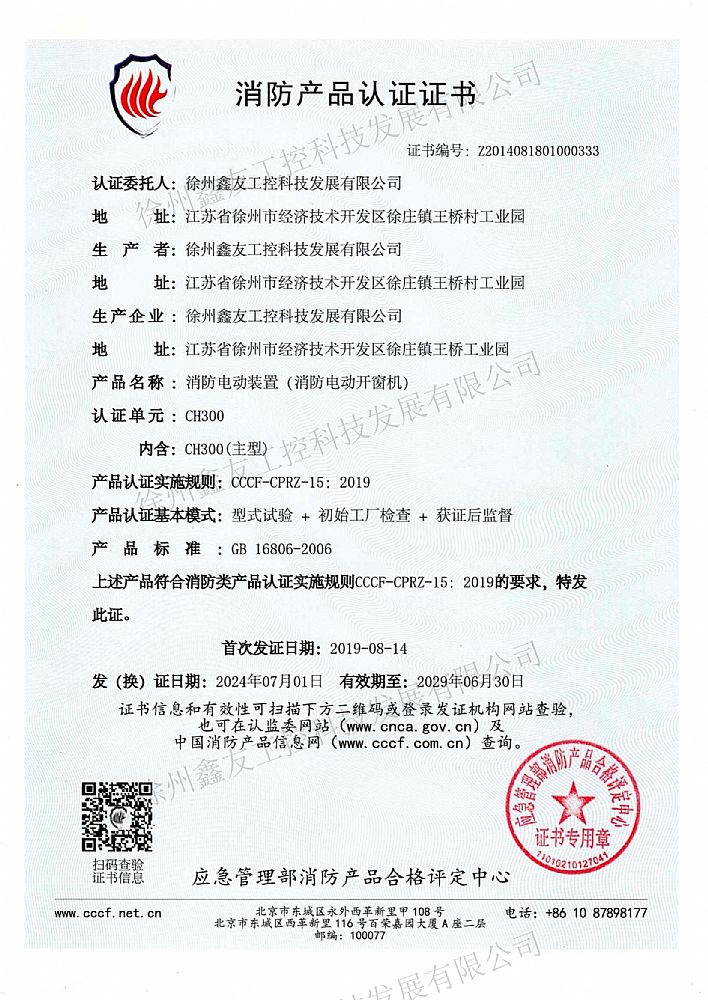 消防產品認證CH300(2019...