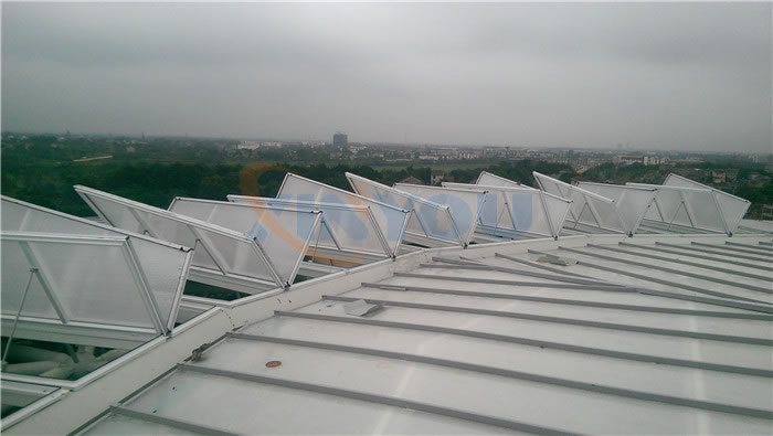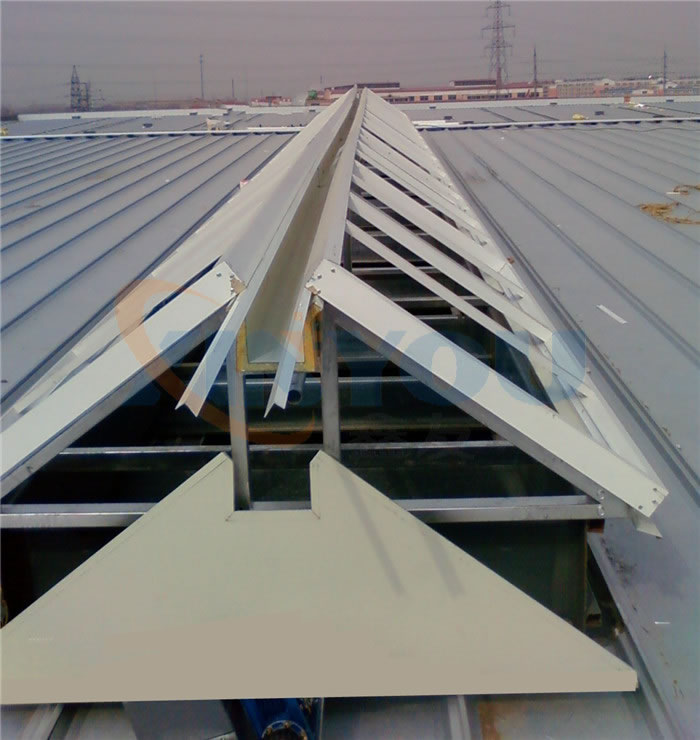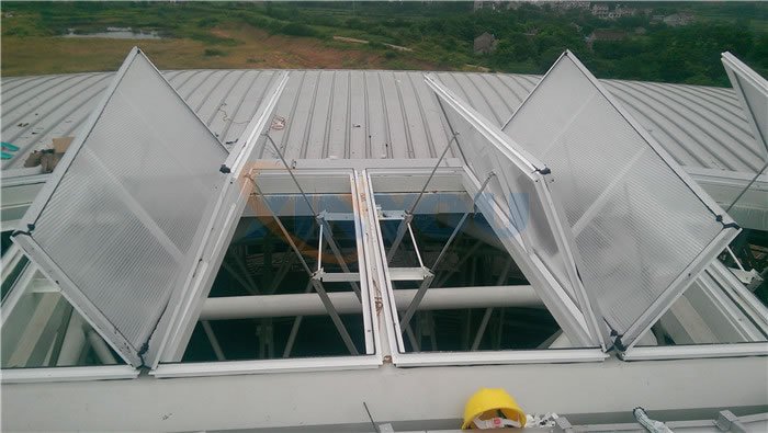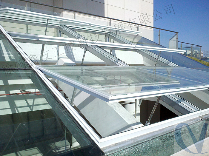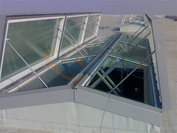 ◆    Triangle Skylight and Linear Skylight areapplied to the buildings, used for mainly lighting, opened if necessary. Themaximum opening angles are 60° and 90°.