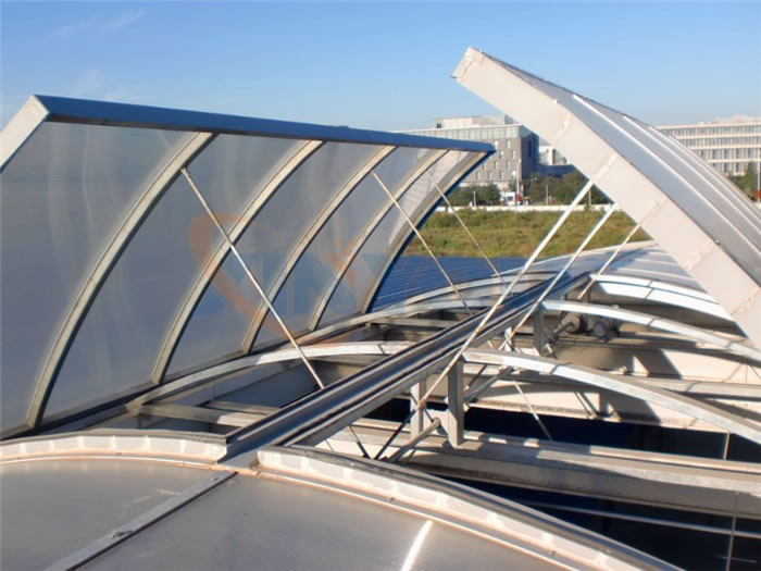 ◆    Arched Skylight is applied to thebuildings, used for mainly ventilation. The maximum opening angle is 45°.
