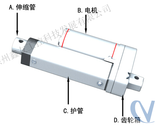 Compact structure of push rod motor, light weight, DC motor gear reducer, can automatically close after reach maximum stroke.