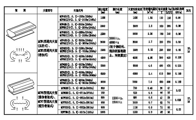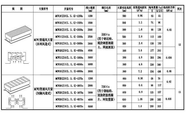 1.  MCW1型通風天窗(并列風道式)